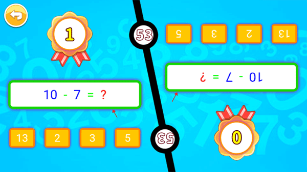 双人算术大对战是款适合于幼儿和儿童激发学习算术兴趣的益智类游戏。