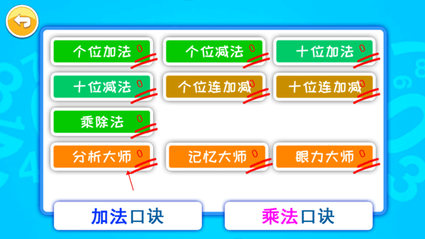 点击算术训练,会看到有三个游戏,分析大师、记忆大师和眼力大师,点击第一个。