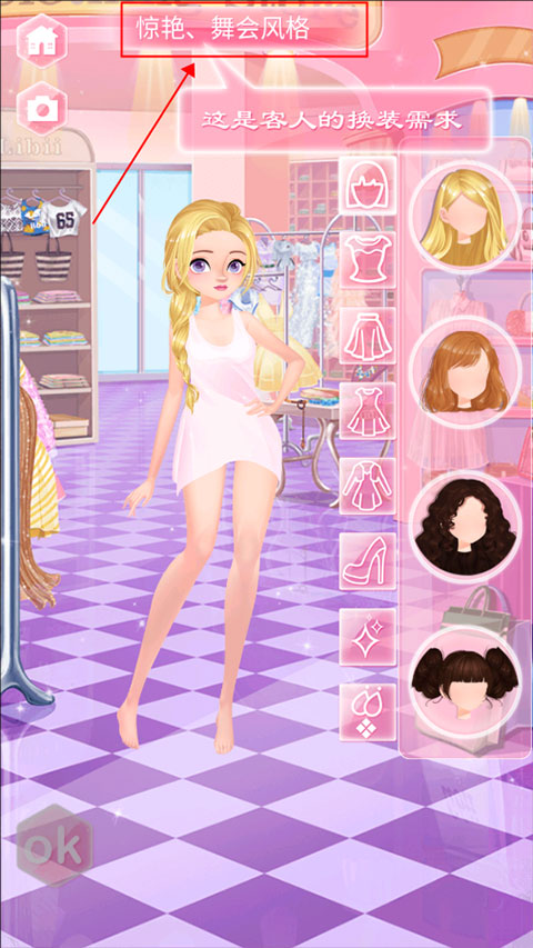 现在玩家还需要尝试根据顾客的需求进设计,同时还有多种场合,每一种场合下,对于穿搭也会具有更大的考验,准备搭配上饰品,从而让角色变得更加的漂亮,快来试试吧。