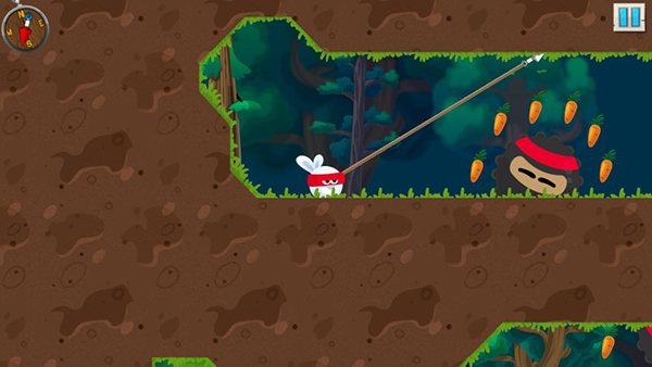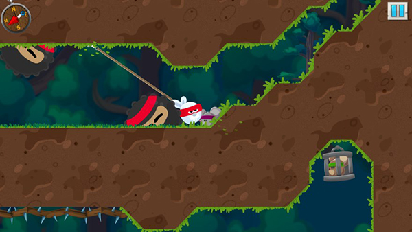 在途中,忍者兔可以使用抓钩,摆动调整自己的方向。