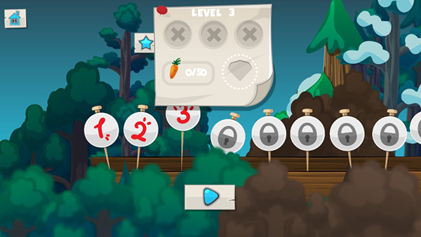 首先我们需要选择关卡,在首页选择第三关,点击蓝色三角形,开始闯关。