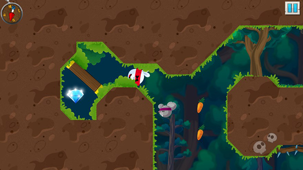 之后玩家要注意在左边隐藏着一个钻石,控制小兔子过去拾取。