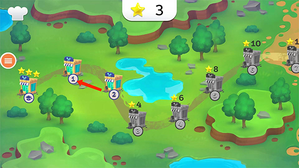 进入游戏地图界面,包括关卡和星级,这里以【第一关】为例;