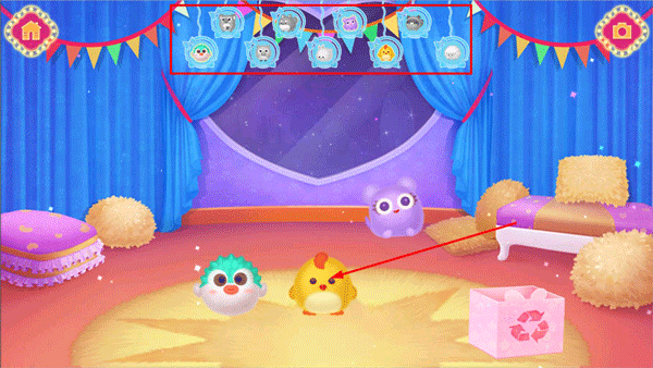 可以根据提示,抓齐娃娃并把它们放到篮子中。