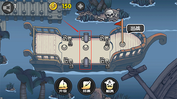 每个船员携带的技能不一样,使用船员后可以为玩家带来不同的战斗帮助,点击船上的炮台