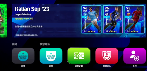 更新了“体验赛”和“好友对战”中可选择的真实球队。