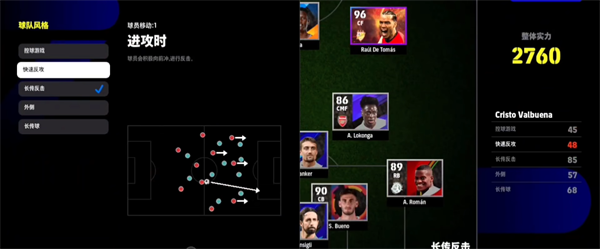 固定阵型我用过最顺手的是4-3-3防守阵型,反击的时候两个边锋前叉积极,直塞容易形成以多打少,很适合新手。