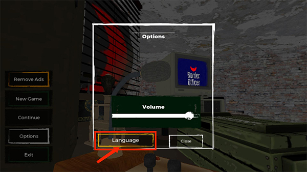 打开移民官模拟器手游,进入游戏主界面,选择下方倒数第二个【Options】选择选项,