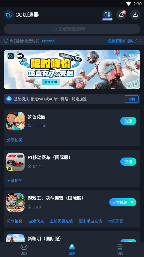 在本站下载可爱的巴迪最新版游戏,游戏需加速器启动,打开CC加速器,找到该游戏,然后点击右侧加速;