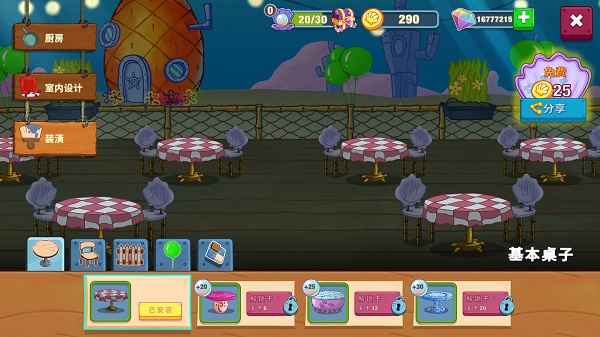 玩家在游戏中需要完成新手任务才可以在商场中进行厨房用具的升级