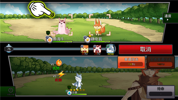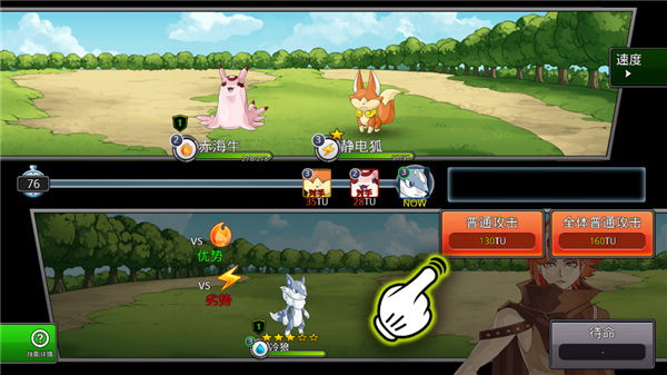 然后再次点击普通攻击,你又被推后了130tu,这代表玩家在这次攻击后,在轮到敌人攻击前,你可以再次攻击一次;