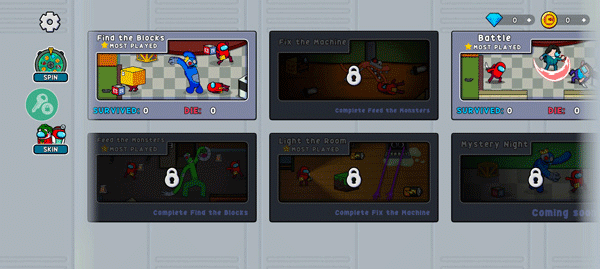 在完成任务后获得的金币可用来解锁角色皮肤