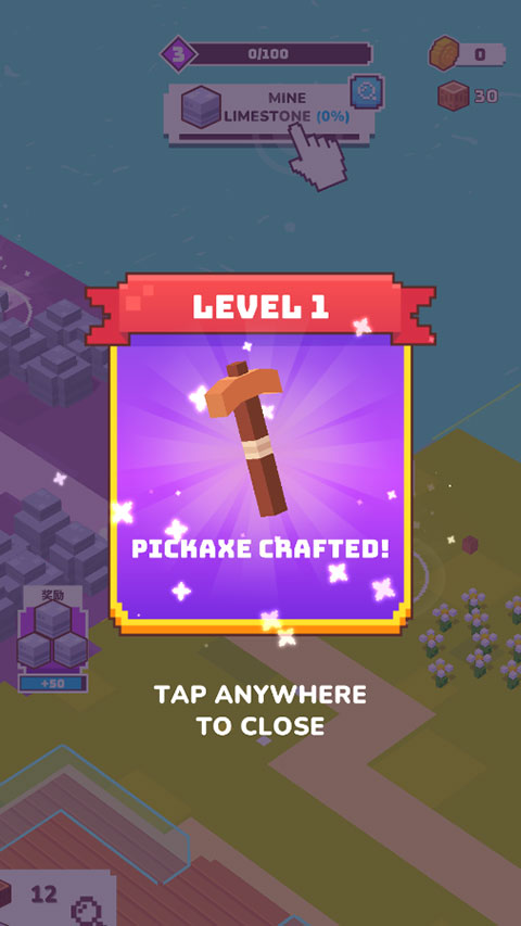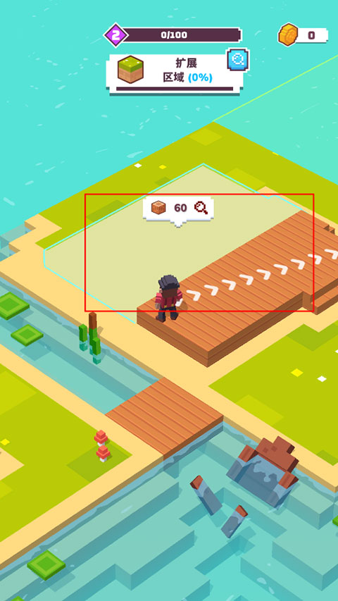 完成一个小目标,会奖励区域扩展,我们需要去砍伐更多的树木来建造;
