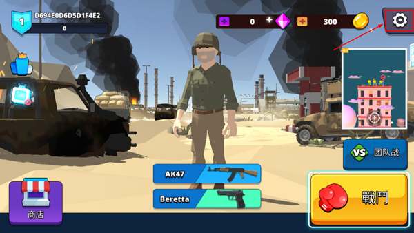 首先打开战斗士兵多边形游戏,进入后,点击有上角齿轮按钮;