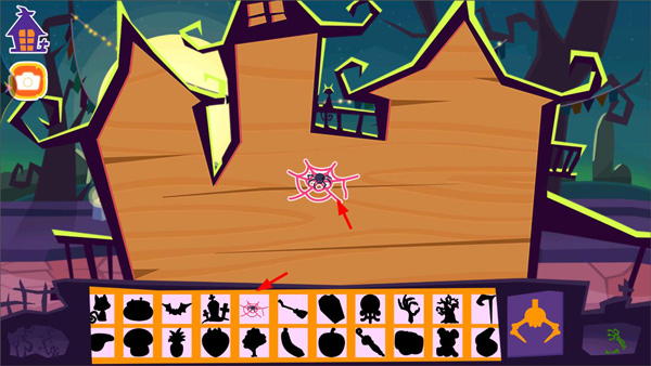 玩家打开糖糖万圣节游戏,进入游戏页面,游戏中有很多万圣节的布置,每个都是不同的关卡,玩家选择自己想玩的关卡进行就可以(例如制作万圣节标牌);