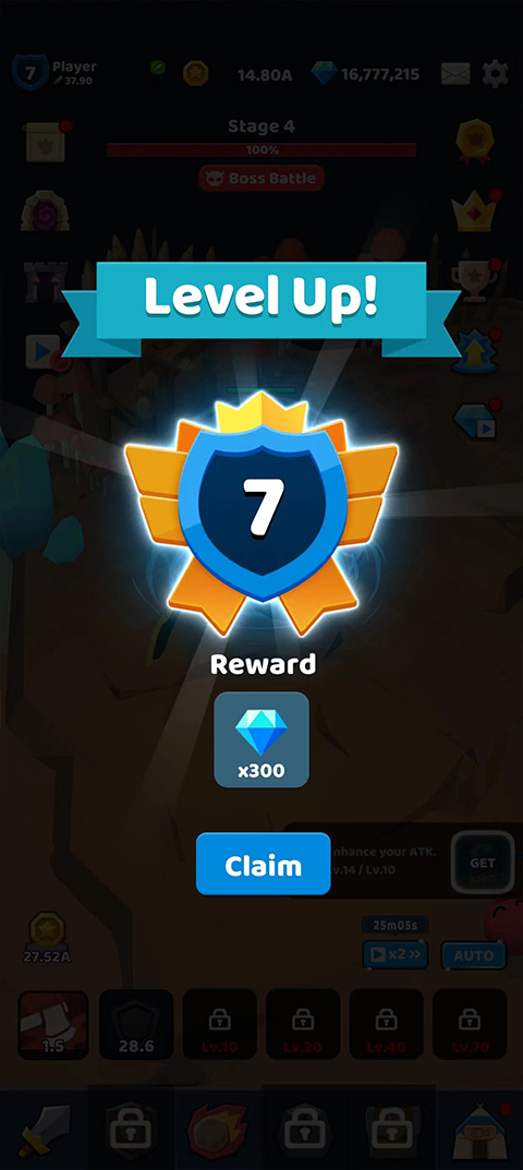 每通过一个关卡,都会加满我们的血量,还会获得相应的金币奖励,可以使用金币奖励来提升我们的战斗力;
