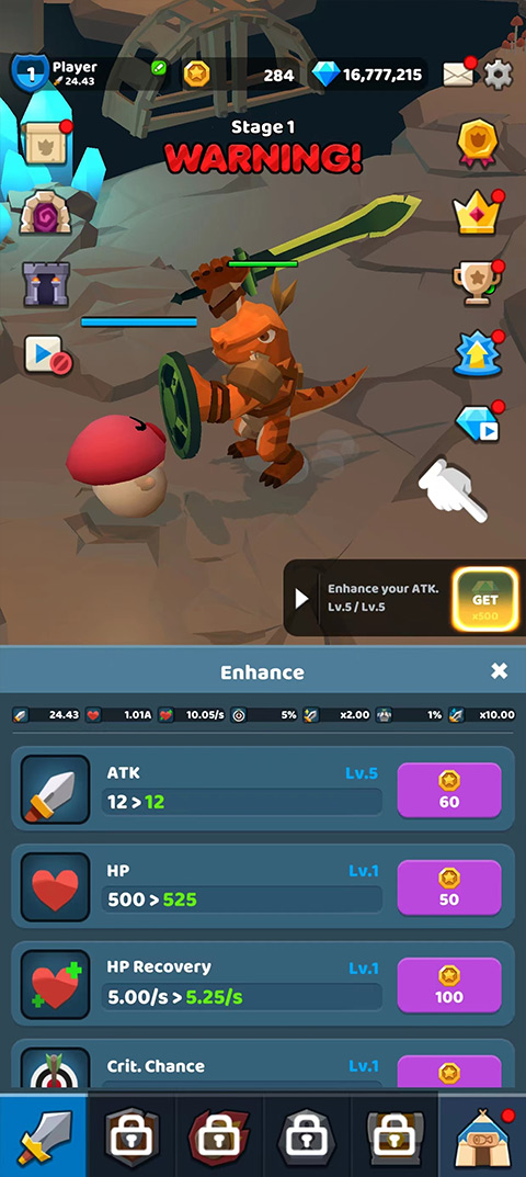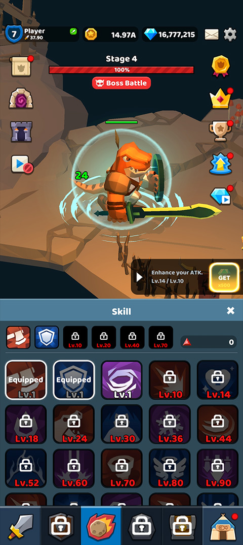 精美的装饰和武器解锁系统,玩家可以自由搭配,打造独特的恐龙骑士形象。