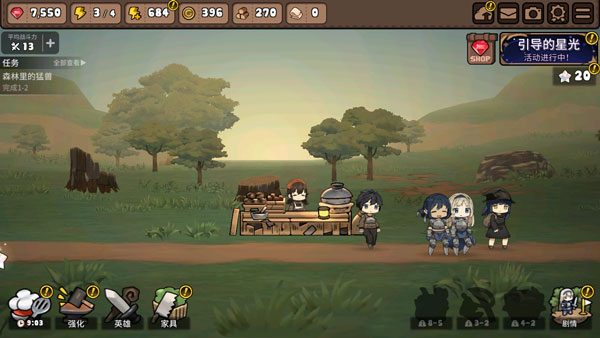 清新卡通风格的休闲冒险游戏,游戏中玩家将组建自己的勇者队伍在野外进行冒险,不断的获得各种各样的食材,游戏的玩轻松有趣,各种各样的角色都非常的可爱,游戏的操作简单容易上手,经营属于自己的酒馆。