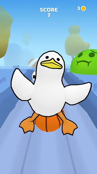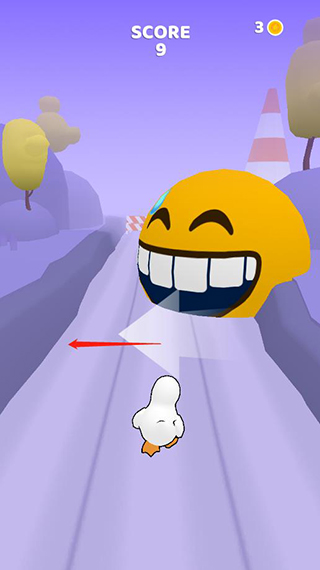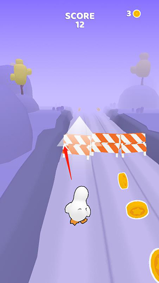 进入游戏后我们可以先熟悉一下操作,在游戏内有3条路,我们可以通过左滑右滑来让鸭鸭调整行走路线,当然在最边上可别再往边上滑可哦。再滑鸭鸭可是会被撞晕的哦。