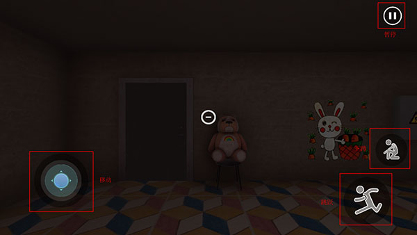 在自由探索中,左边为移动按钮,右边分别是跳跃与下蹲,右上角可以暂停和返回主页;
