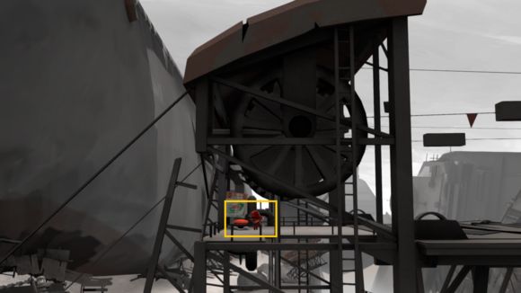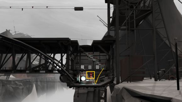 基本没什么难度,下车一直走,来到桥另一头,这里把那个油桶放到箭头处,按下开关ok了。