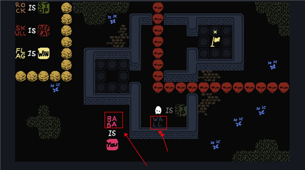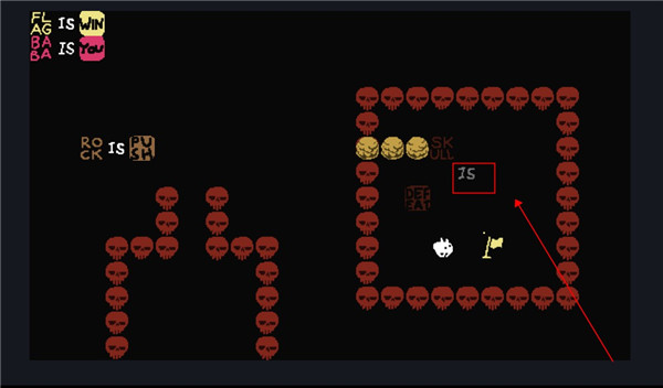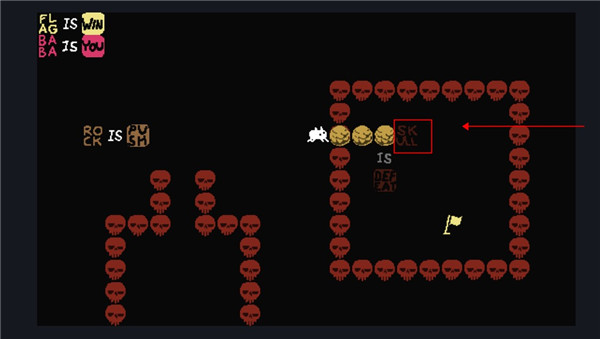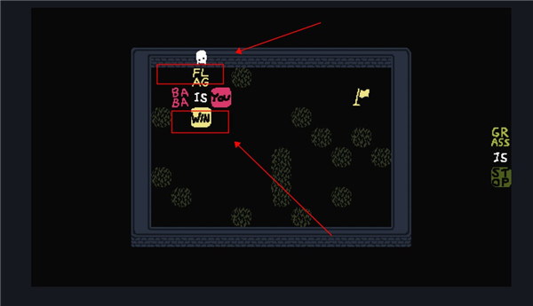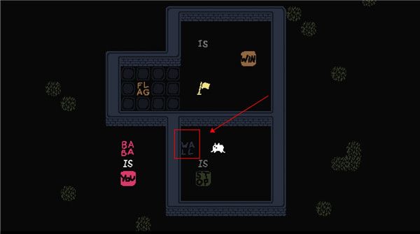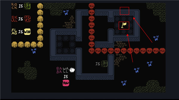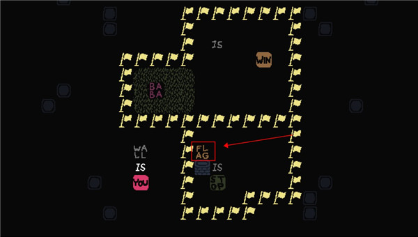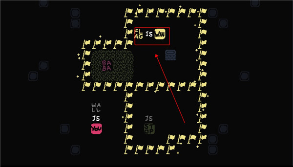 这个时候我们控制的就不是baba了,可以控制墙壁,向下滑动用墙壁触碰旗子