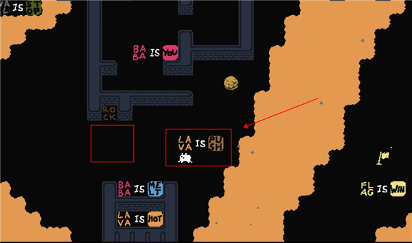将这一块岩浆推开就可以通关了