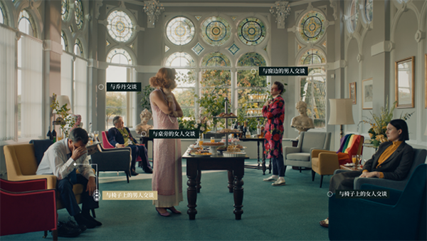 然后你就会来到宴会大厅你可以与他们逐个对话,根据他们口中的线索进行整合从而进一步展开行动