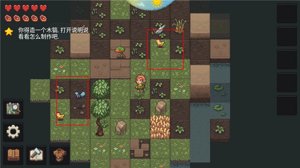 铲子可以铲土,黑色土和黄色沙可以按住方块挖掘,挖草坪铲子会消失,疑似bug。锄头按住方块挖黑色土可以种植,小麦樱桃等。树等种子按住方块种植,保护环境。