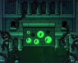 这时要通过绿色的跳到小板上再向上迟到黄钻,之后不要闪,直接走到右侧,然后向下冲刺离开房间。