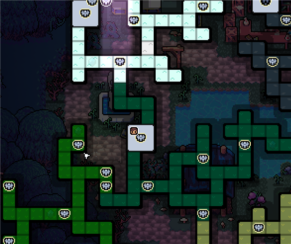琥珀小径与蟹钳峡谷(右边褐色区域)和暗黑泥潭(左边深绿区域)相连