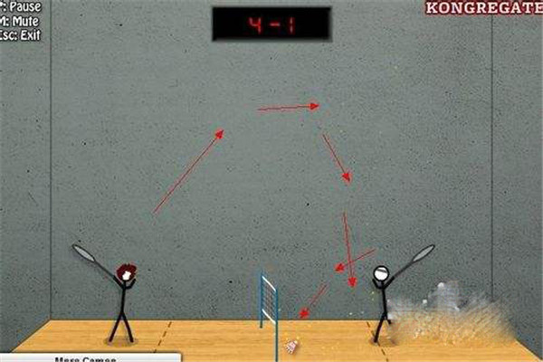 我们赢得一局,接下来装备好下一场开始。电脑似乎没有增加什么难度,我们跳起来打羽毛球,拉一个高远球,电脑还是接到,然后就出现失误,直接打向了网前。
