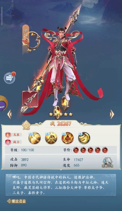 是不少玩家朋友们非常喜欢的一个火系输出单位,100级的时候就有着3892的攻击,17407的生命值和890的防御以及665的速度。光看数值面板来说,目前来看是排在火系输出的前几梯队了。而且对于平民玩家而言,哪吒也是比较容易能抽得到的那种类型,只要运气不是特别差,想养一个哪吒还是很简单的。