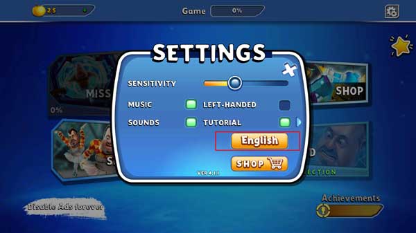 打开游戏默认是英文状态下的系统界面,点击右上角的齿轮按钮。