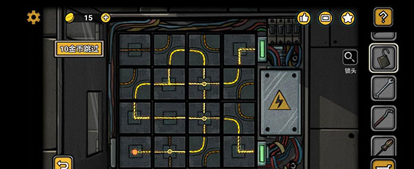 然后我们回到配电室门口的区域,在左下方查看工具箱,组装好十字螺丝刀,用其打开箱子,取得钳子。