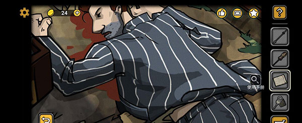 进入新区域后,点击白布发现使用手册。通过白色大门,发现尸体,点击金币(更新记录),获得厨房钥匙。掀开衣角发现绘本残页。(绘本残页全部放入绘本中解锁成就“恐怖故事”)