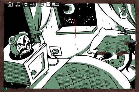 第九关:屏幕的左上角有一个很小的黑点,那个是按钮,点一下就过关。