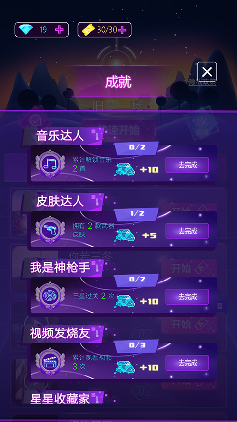 如图,完成挑战即可看到总得分,并且可以解锁新的音乐、获得钻石奖励,