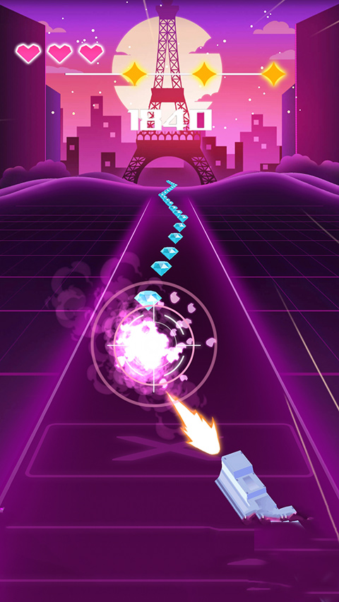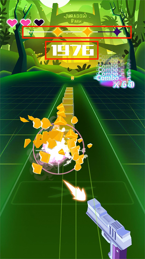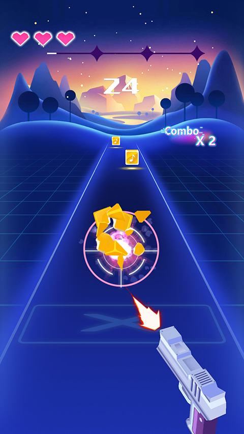 进入游戏后,玩家只需轻轻左右滑动,跟随音乐节奏自动瞄准射击。