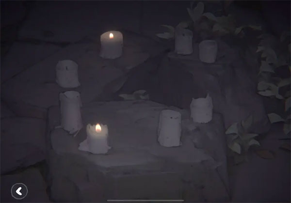 HD 在秘密收藏室魔法师桌子上拼图片得到一个蜡烛,蜡烛周围有一圈点点,有2个亮着,然后按提示到雕像室蜡烛面前做出拼得的图案