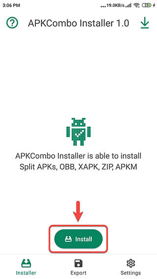 准备工作,下载并安装APKCombo Install应用,将下载的.apk安装包后缀名改为.xapk