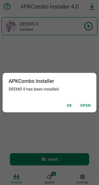 这时需要稍等一会儿,安装完成后会弹窗提醒,点击open即可打开应用
