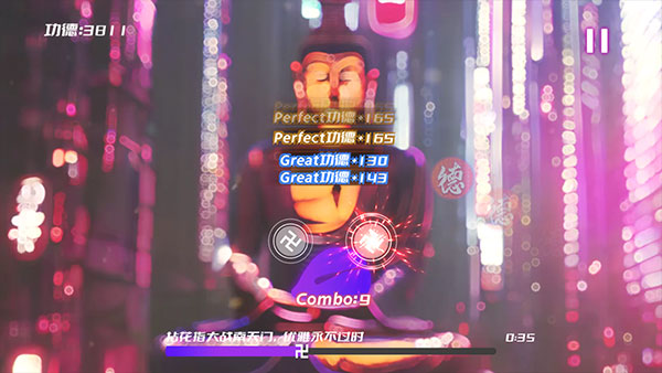 开始挑战音符节奏吧,积累更多“功德”分数!