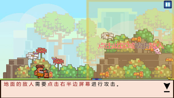 首先以游戏界面的中心划分,右击是敲击地面上的节奏点,同时也是打击地面生物的有效防御,而左侧界面是玩家防御空中生物的有效点,通过音乐的节奏点,配合英雄进行左右,或者地空的节奏打击,即可。