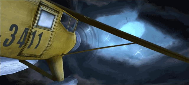我们进入游戏里,丁丁和船长驾驶着小飞机在电闪雷鸣的云层中穿行,危机重重。