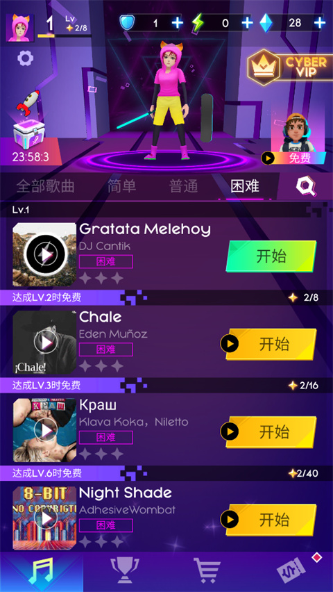双击打开节奏骑士手游,你可以根据需求选择关卡的难度;