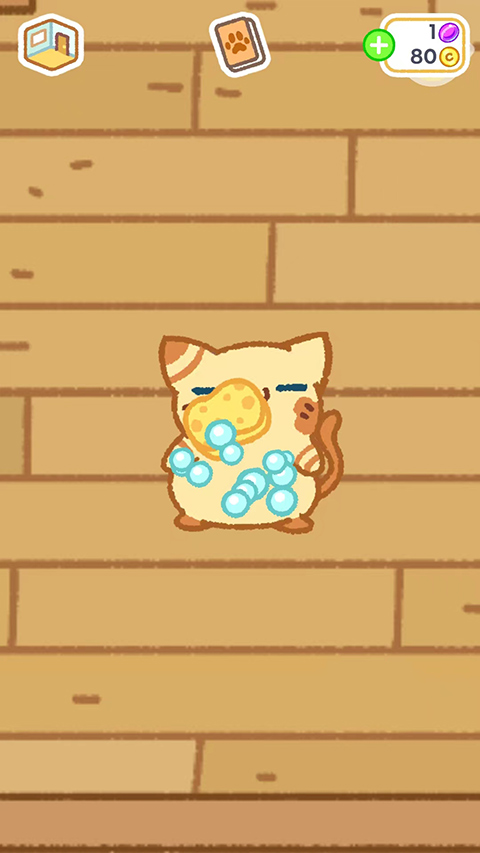 选择【洗澡】选项,将香皂在小猫身上来回拖动就可以给它洗澡了,
