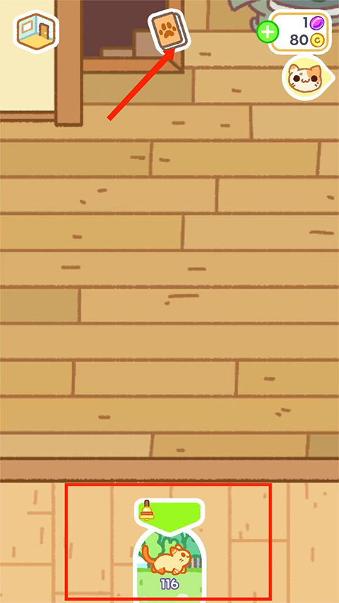 接下来,点击上方的【圆球】图标,这样小猫就会出去“偷”东西了,