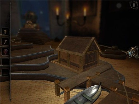 将得到的道具小船放在轨道上,滑动到房子边上的港口里。