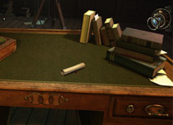 这间房里放了很多书和电闸,四处看看,桌子上有一封信,打开。